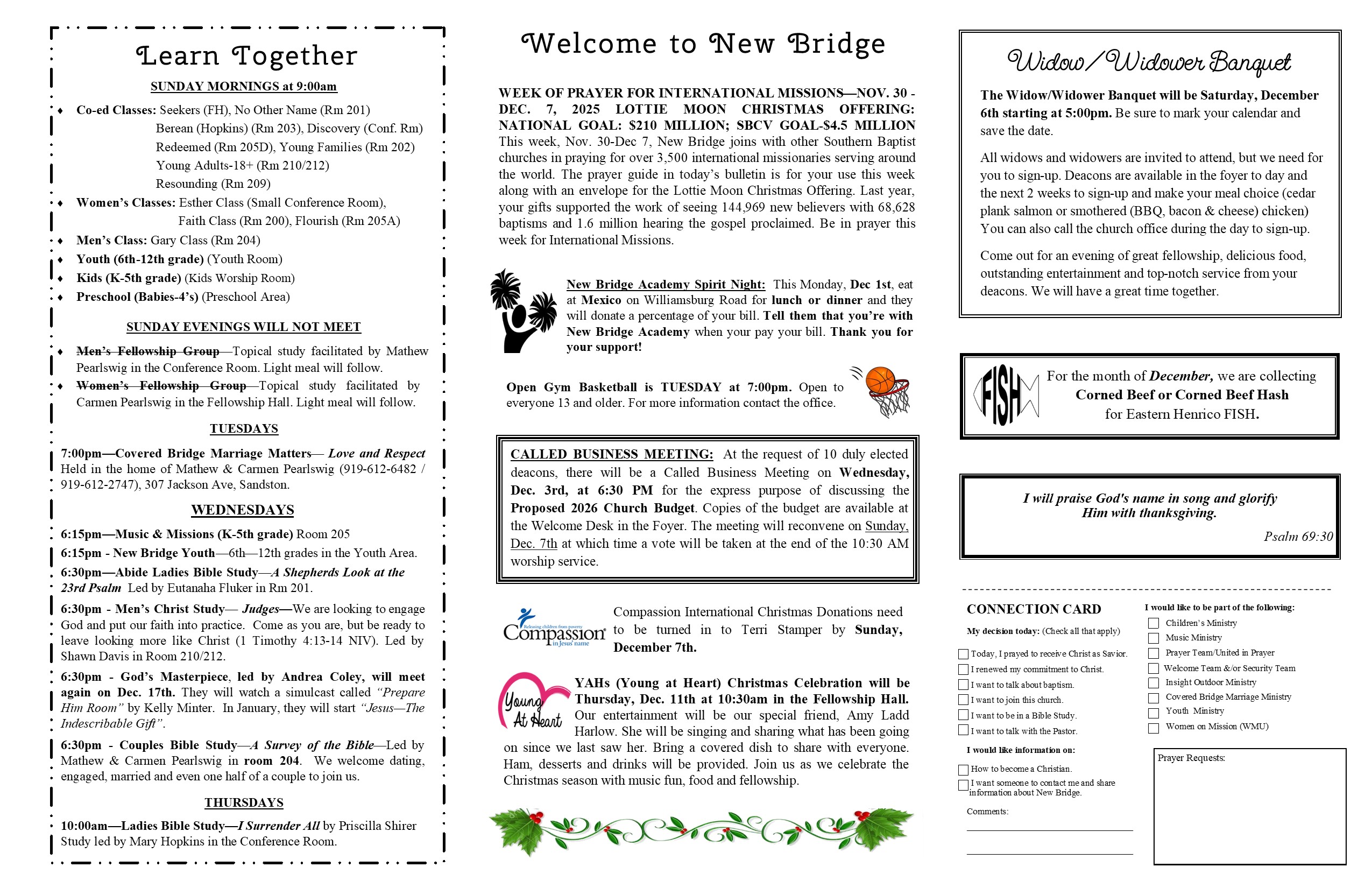 We will sing Christmas carols and Pastor Rob will help us prepare our hearts for Chirst's birth.