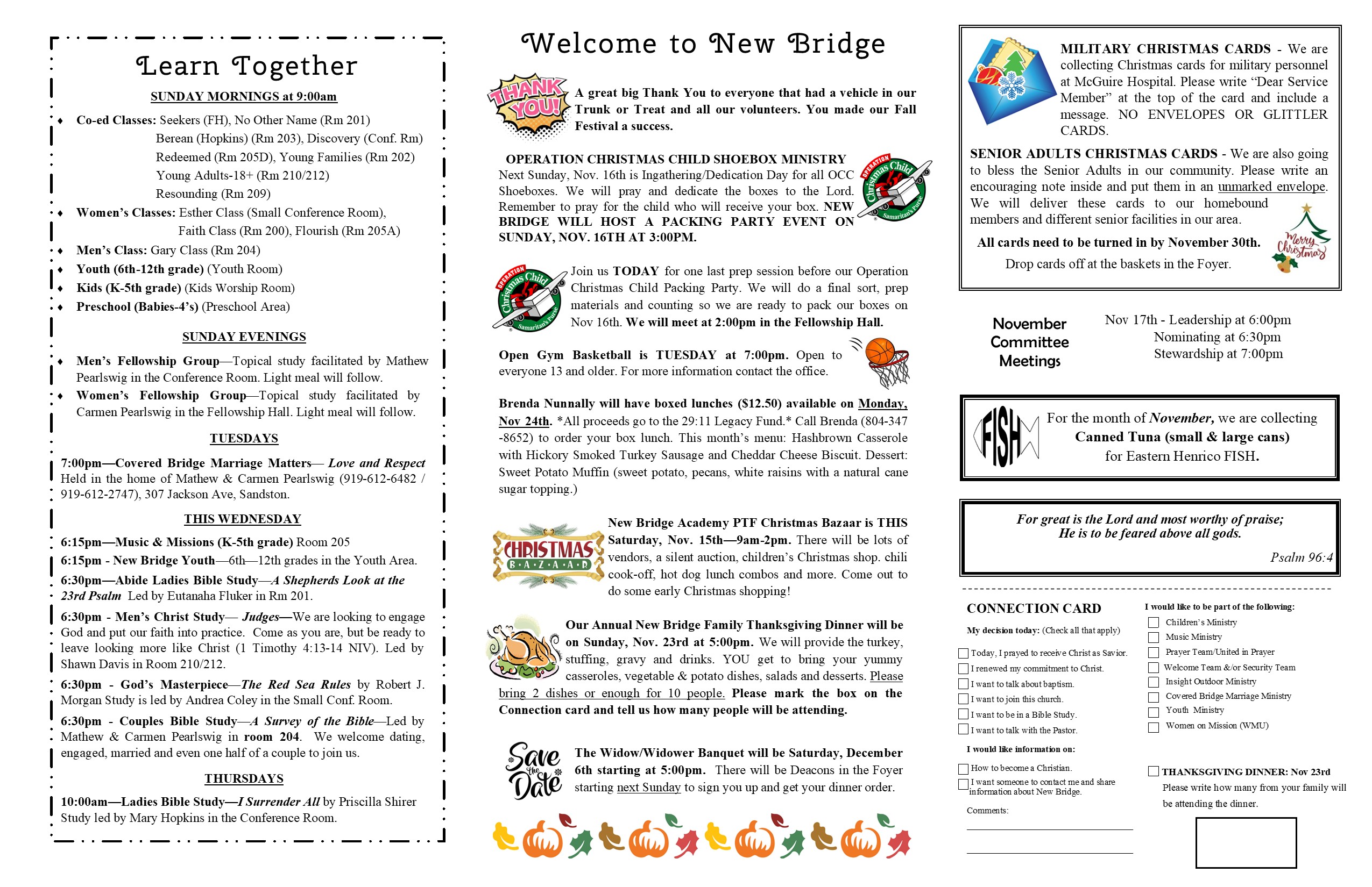 New Bridge Academy PTF Christmas Bazaar is on Saturday, Nov. 15th—9am-2pm.